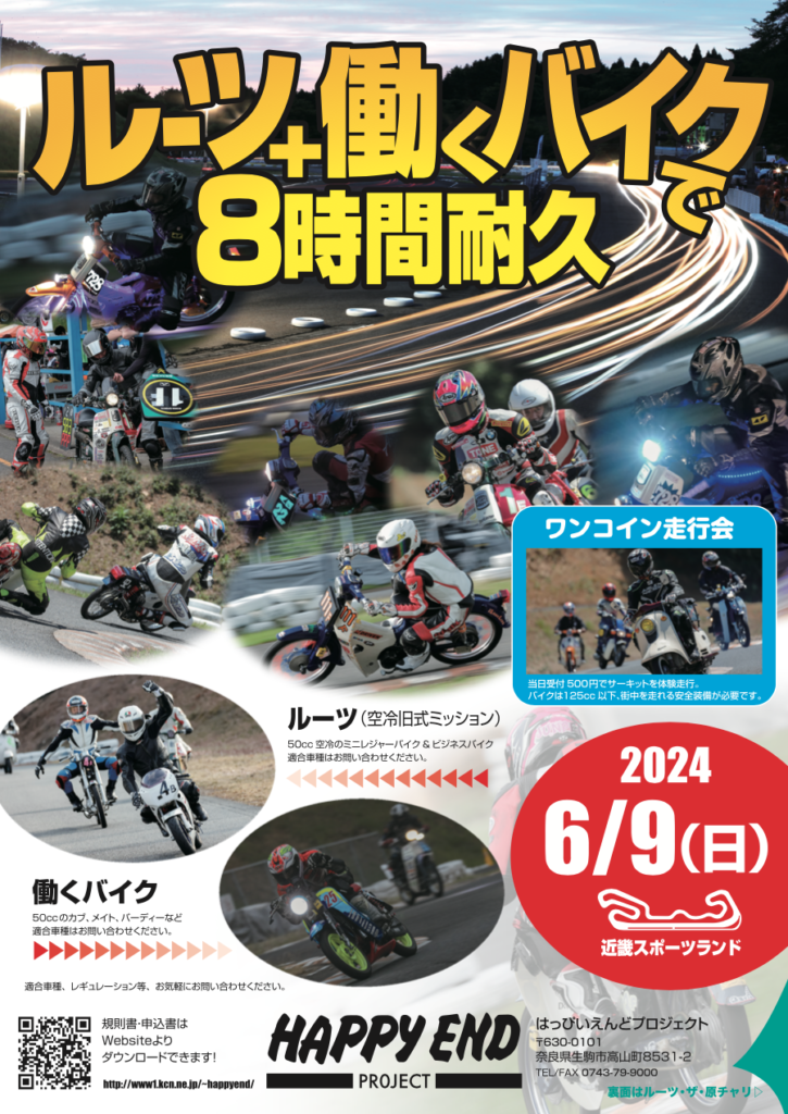 6月9日(日)開催、ル-ツ+働くバイク8時間耐久