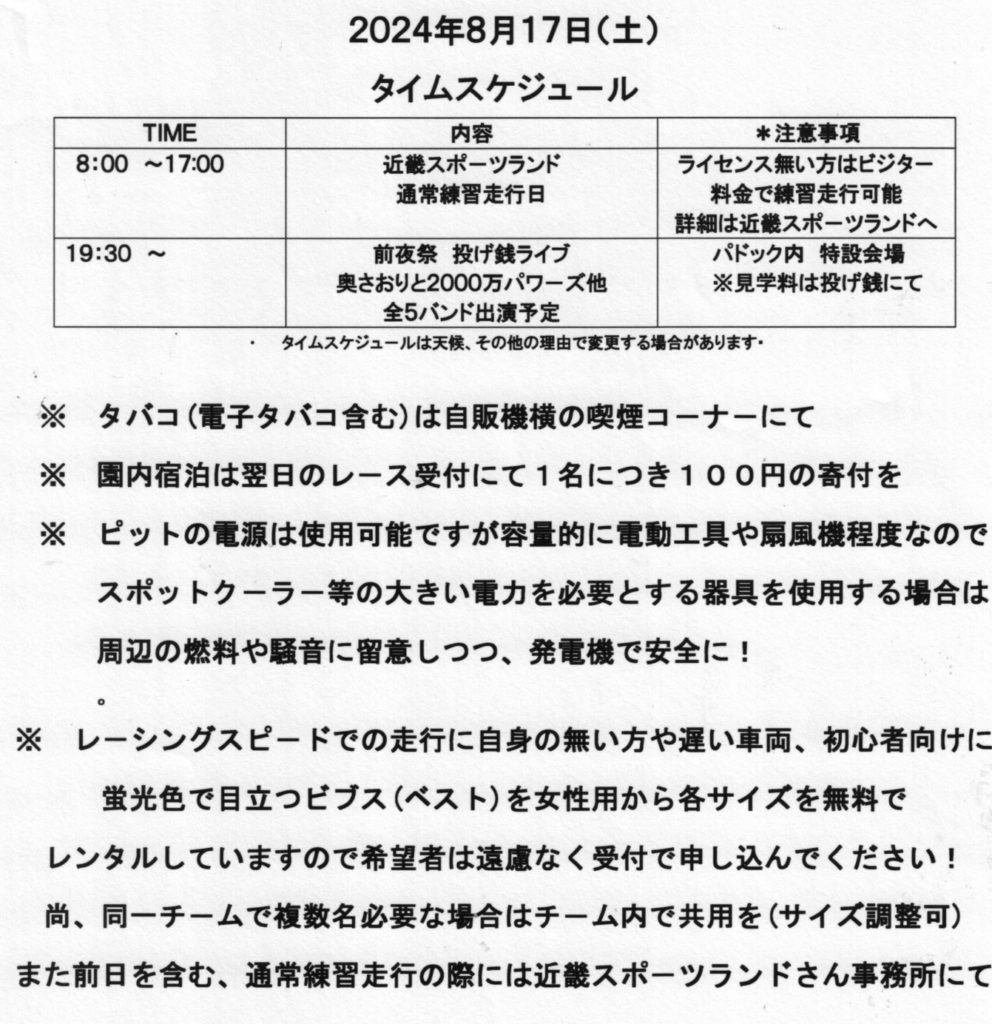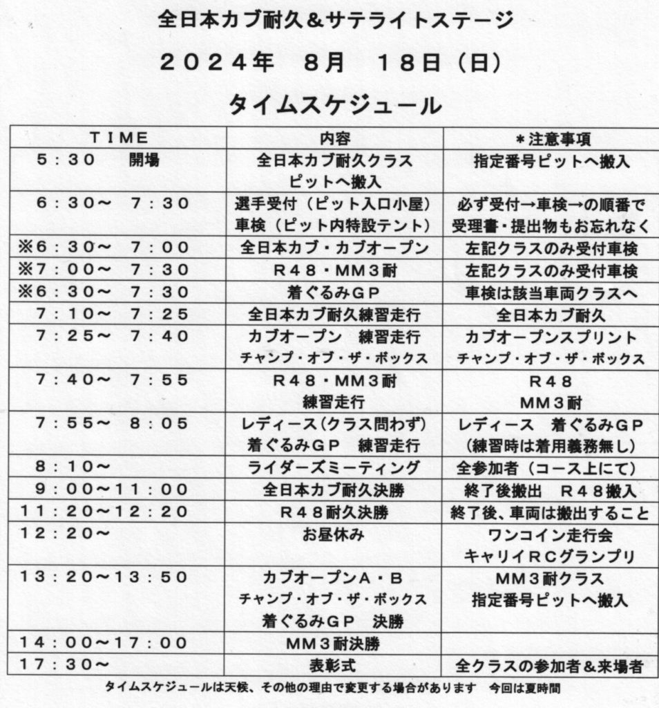 8月18日(日)開催、全日本カブ耐久&サテライトステ-ジ