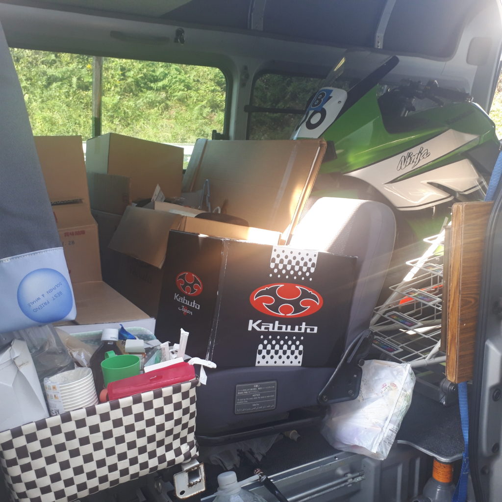 お天気になった本日は朝から出展用品を降ろして店内・店外に干して