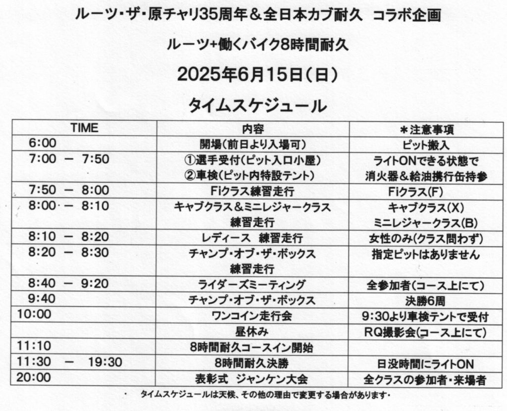 6月15日(日)開催、ル-ツ+働くバイク8時間耐久の受理証一式は