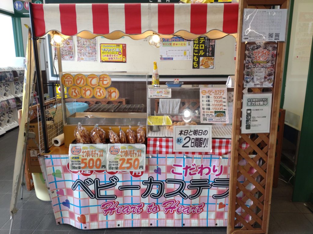伊賀上野のス-パ-に出店していた木藤君のベビ-カステラ店へ
