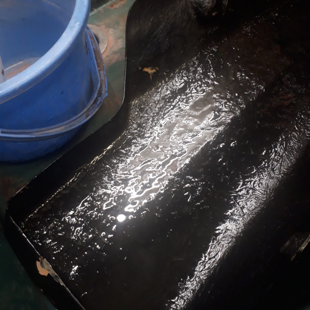 転倒して削れた(貫通している)FRPカウルを裏から繊維を貼って