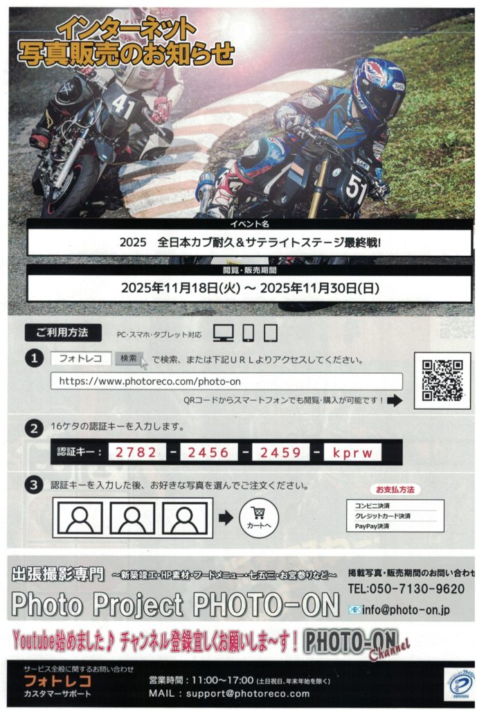 11月16日(日)開催、全日本カブ耐久&サテライトステ-ジ最終戦を